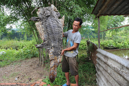 "Lần đầu tiên thấy cá sấu tôi sợ lắm. Nhưng tôi phải nghĩ cách bắt nó để không gây nguy hiểm cho người thân và gia súc, gia cầm", anh Thành nói.