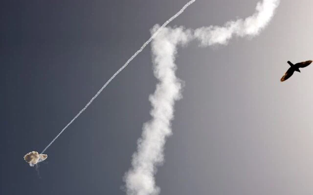 Tên lửa của hệ thống Iron Dome (Ṿm Sắt) đánh chặn một rocket trên bầu trời thành phố Ashdod, miền nam Israel hôm 12/5 (Nguồn: AFP).