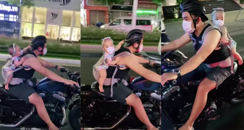 Mới đây, trên mạng xã hội đã xuất hiện đoạn clip ngắn. Ghi lại cảnh một ông bố địu con gái trên lưng, sau đó điều khiển xe phân khối lớn di chuyển trên đường. Đoạn clip này nhanh chóng nhận về nhiều sự chú ý và bình luận, nhất là những bậc phụ huynh đang có con nhỏ.