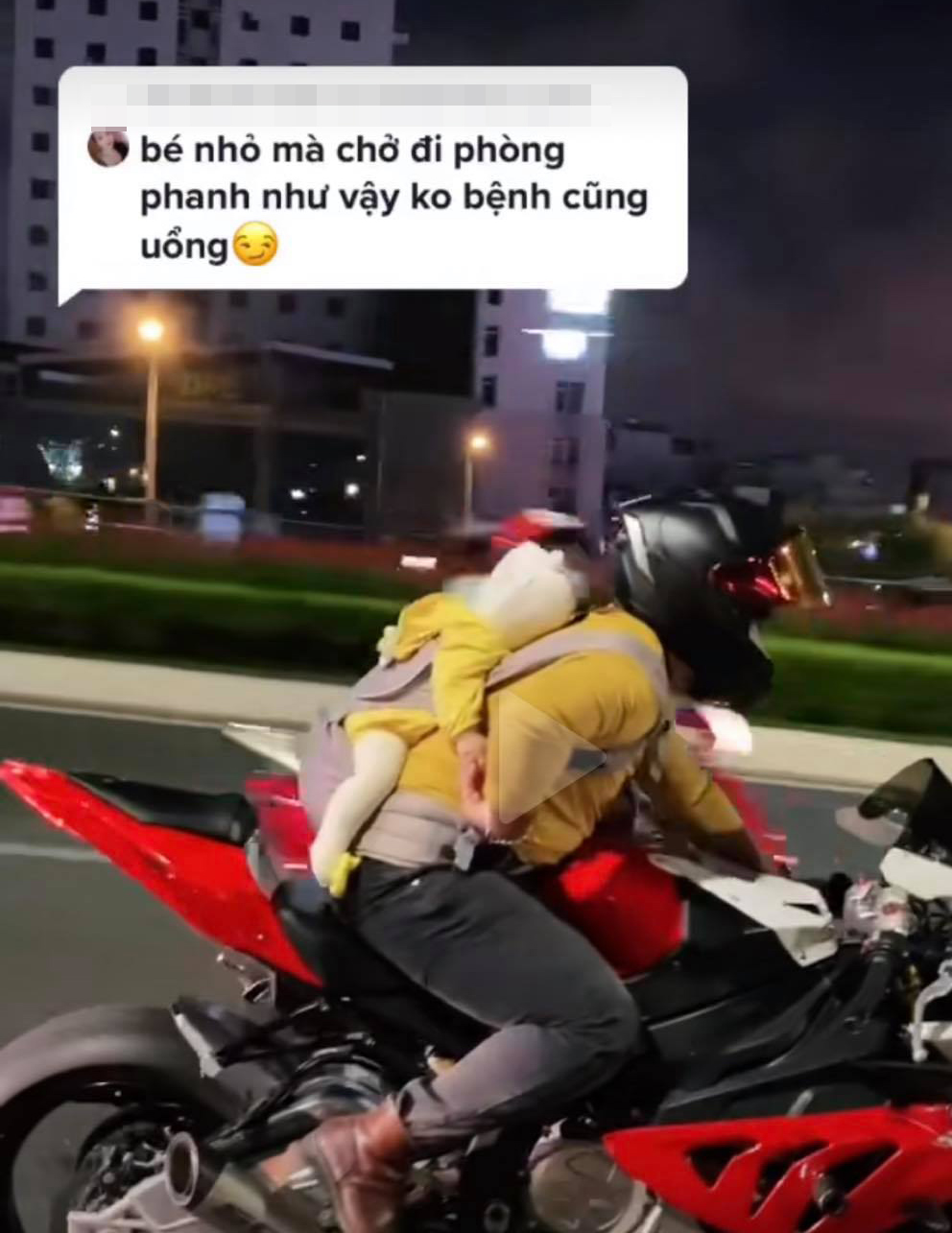 Được biết, ông bố trong clip đã nhiều lần chở con gái trên xe phân khối lớn. Người này còn tiết lộ 'bé nhà mình đi chơi từ 1 tháng'.
