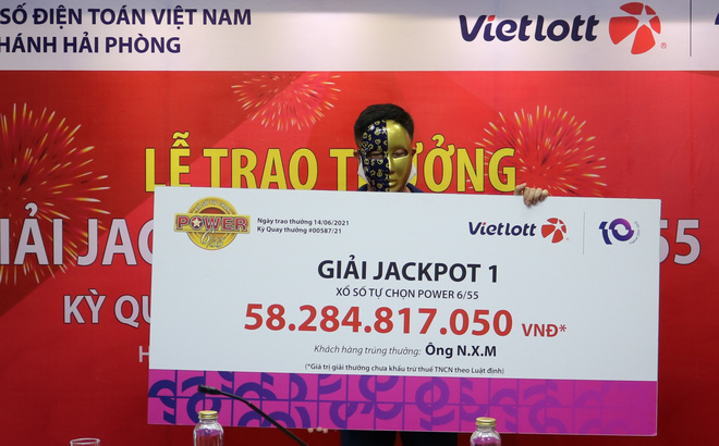 Trước đó, chi nhánh Hải Phòng đã tiếp nhận chiếc vé xổ số tự chọn Power 6/55 kỳ QSMT thứ 00587. Qua kiểm tra, Công ty Xổ số Điện toán Việt Nam xác định chiếc vé đã trúng giải Jackpot 1 với trị giá 58.284.817.050 đồng (chưa khấu trừ thuế TNCN).