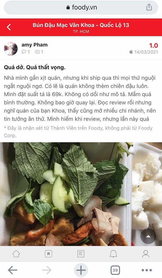 Old  Default Bún đậu "Mạc Văn Khoa" nhận loạt đánh giá 1 sao