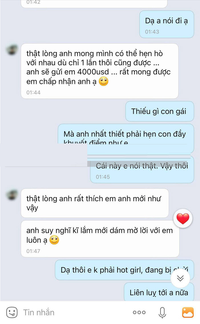 Mới đây nhất, chia sẻ với SAOstar, cô nàng cho biết không chỉ bị tấn công mà còn có tình trạng đại gia nhắn tin ra giá đến 5 nghìn USD với yêu cầu "phải cởi": "Những ngày qua mình ở nhà. Không dám lên mạng quá nhiều. Có mấy người nhắn gạ chat bậy bạ nhưng mình kiểu lơ họ đi. Họ gạ mình xong đòi bóc phốt ngược lại".