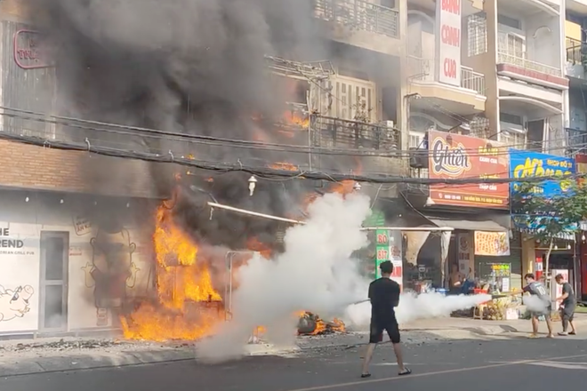 Đám cháy bùng phát từ bảng hiệu rồi bao trùm toàn bộ khu vực mặt tiền của căn nhà 3 tầng ở quận Tân Bình (TPHCM), khiến nhiều người hốt hoảng tháo chạy.