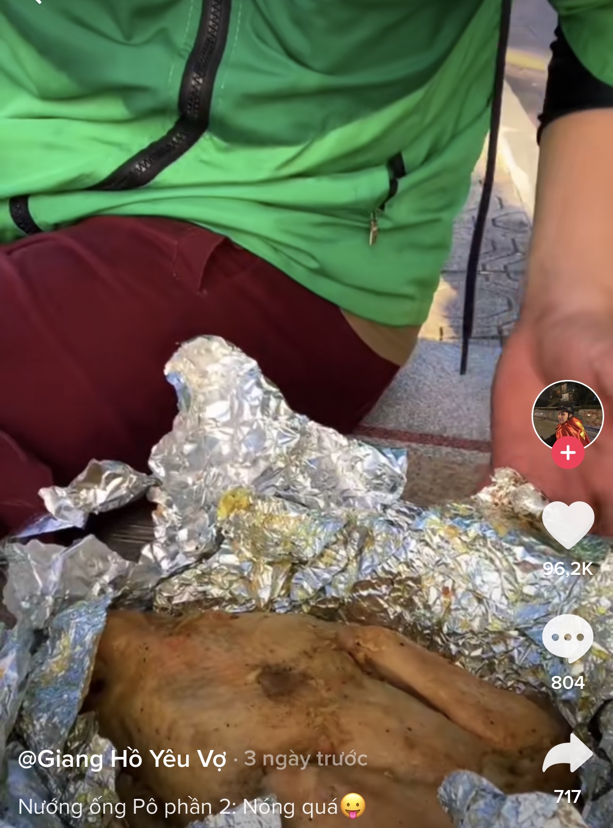 Tiếp theo, anh ta quấn quanh con gà nhiều lớp giấy bạc rồi cố định nó trên ống pô bằng chì sao cho giấy bạc và gà tiếp xúc được với sức nóng của ống pô. Cuối một buổi chạy xe vất vả, anh chàng này đã tìm chỗ ngồi nghỉ và tháo con gà ra để đánh chén. Toàn bộ quá trình đều được ghi lại và đăng tải trên TikTok.