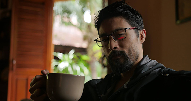 Trong những hình ảnh hiếm hoi chia sẻ, anh vẫn giữ hình tượng bụi bặm khi để râu dài, mặc trang phục tối màu.