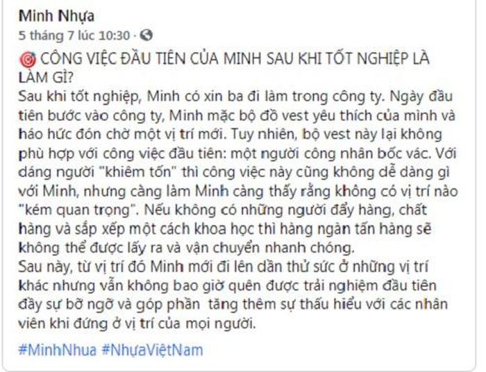 Theo chia sẻ trên trang cá nhân, công việc đầu tiên sau khi tốt nghiệp của đại gia Minh Nhựa là công nhân bốc vác.
