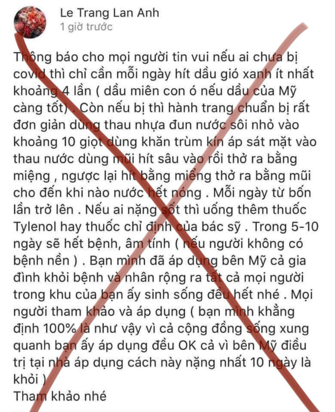 Trên mạng xã hội mấy ngày nay lại lan tỏa thông tin khuyên mọi người nên hít dầu gió thường xuyên cũng như xông mặt mũi bằng nước nóng có dầu gió để chữa COVID.