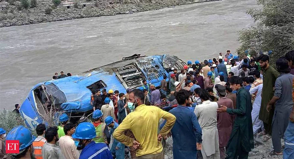 Hiện trường vụ nổ xe buýt ở Pakistan khiến 9 công dân Trung Quốc thiệt mạng hôm 14/7. Ảnh: Economic Times