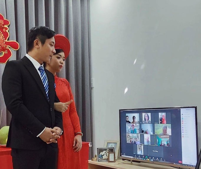 Hôn lễ online diễn ra trong khoảng 2 giờ 30 phút, lễ rước dâu tượng trưng bằng việc rước dâu từ phòng này qua phòng kia có bạn của cô dâu làm chứng. Vì làm đám cưới online, không biết tham khảo từ ai nên chị Khánh cùng gia đình cố gắng giữ những nghi thức truyền thống nhưng ứng dụng công nghệ vào buổi lễ. Anh cả cô dâu là chủ lễ, kiêm luôn MC giới thiệu và chủ trì hoạt động trên... ứng dụng Zoom. Chị Khánh là nhiếp ảnh gia, chụp quay màn hình lại để làm album và dựng thành... phóng sự cưới.