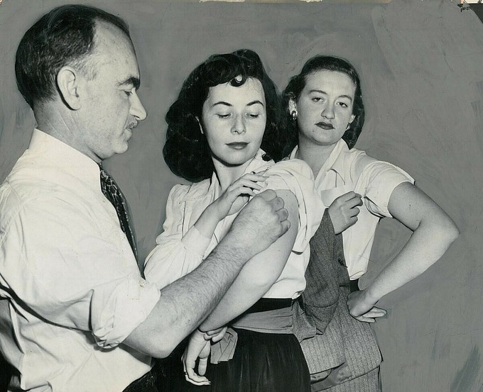 Người New York tiêm vaccine trong đợt bùng phát dịch đậu mùa tháng 4/1947. Ảnh: NYT