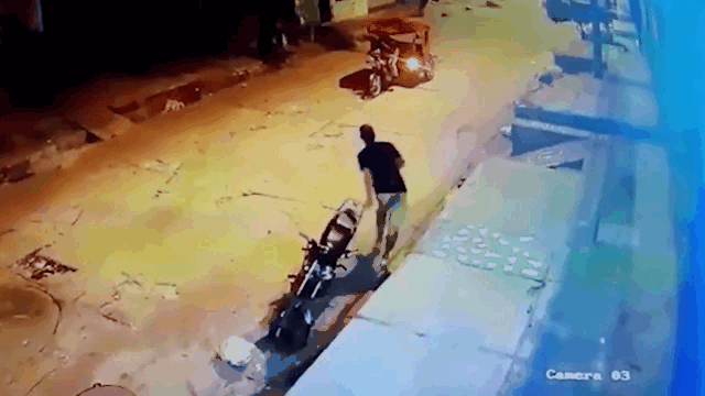 Đoạn video ghi lại cảnh một nam thanh niên đi trộm xe máy và bị chó đuổi bỏ chạy thục mạng trên đường.