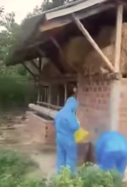 Theo đó, sự việc diễn ra tại tỉnh Bình Định. Đoạn clip dài 46 giây cho thấy lực lượng y tế đang đến nhà người dân vừa về từ TP.HCM để thực hiện khai báo y tế cũng như test nhanh. Không gian cách ly của cậu con trai là khu chuồng bò khá kiên cố, đặt sát ngôi nhà chính thức của gia đình.