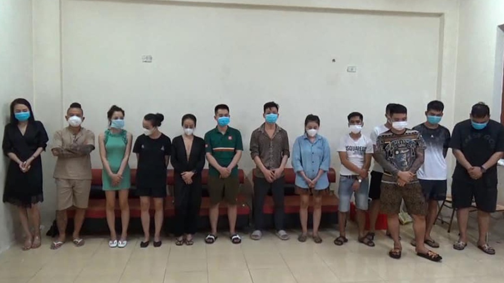 Trước đó, khoảng 2 giờ 35 ngày 29.7, lực lượng của Đội Cảnh sát hình sự Công an TP.Ninh Bình tổ chức kiểm tra quán karaoke Phan Tom (ở P.Đông Thành, TP.Ninh Bình) thì phát hiện trong một phòng hát có 13 người (8 nam và 5 nữ) tổ chức hát hò và sử dụng chất ma túy.