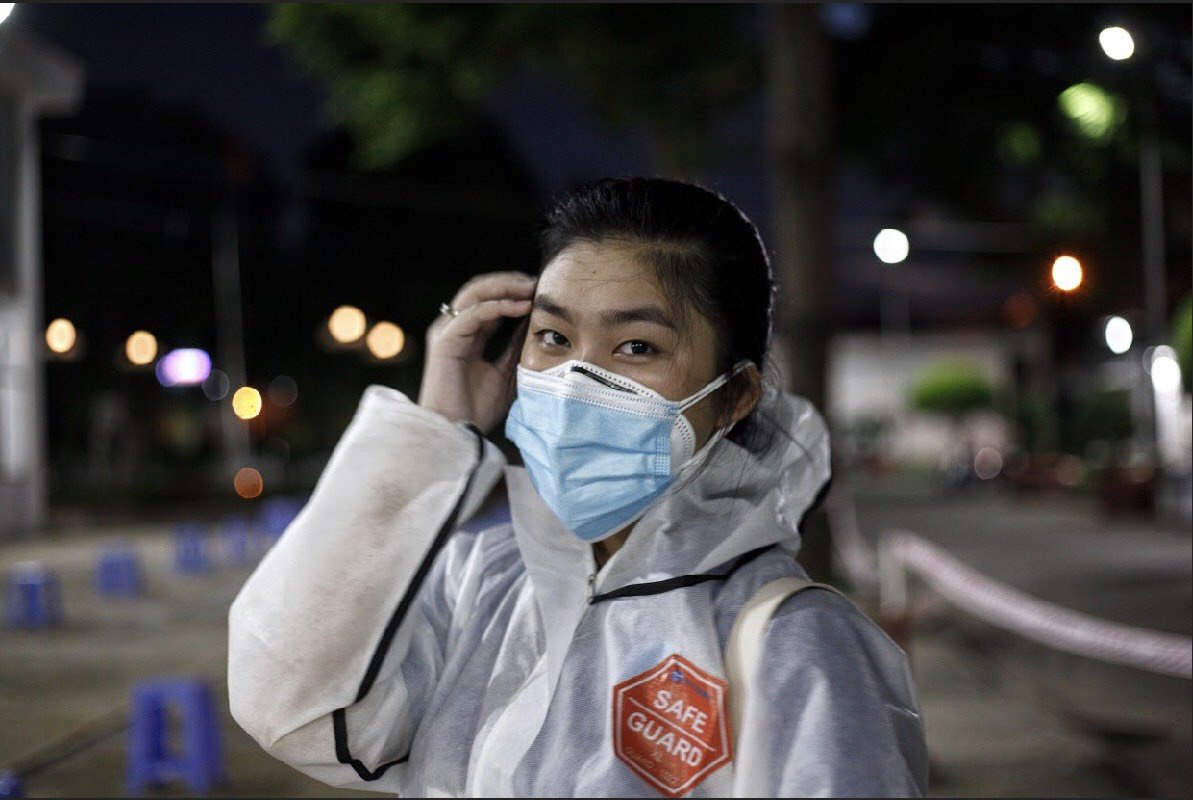 Nhận được tin nhắn từ bạn trai, Võ Kim Shotika (sinh năm 2002), tình nguyện viên chống dịch tại quận 12, TP.HCM, mỉm cười, chuẩn bị lên đường hỗ trợ lấy mẫu xét nghiệm như thường ngày.