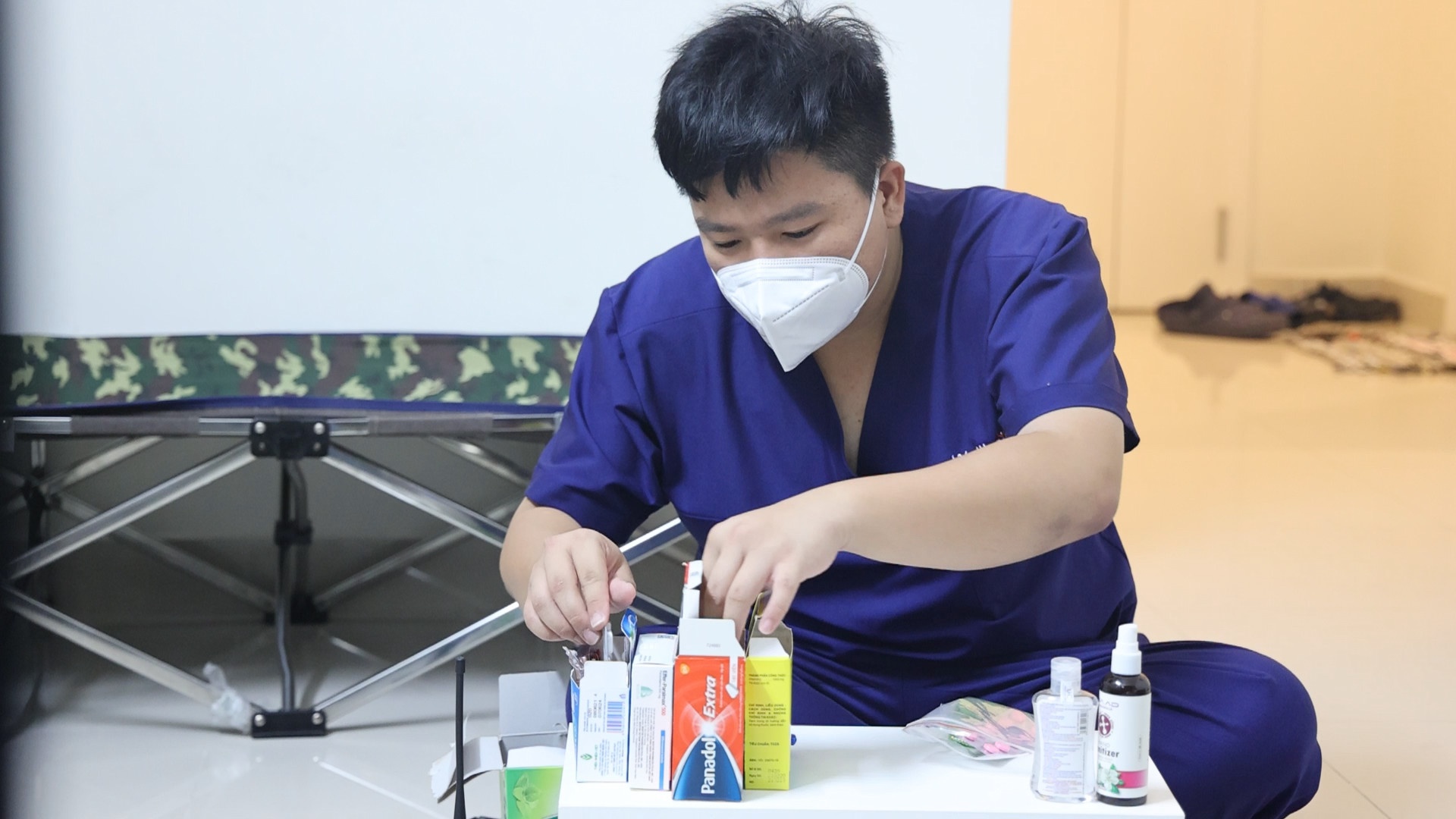 Cường độ làm việc ở bệnh viện dã chiến rất cao, áp lực và trách nhiệm nặng nề. Mỗi ngày, bệnh viện tiếp nhận trung bình 300-400 bệnh nhân. Tôi vừa phải sắp xếp thời gian và số lượng bệnh nhân ra viện, vừa phải bố trí phòng cho bệnh nhân mới.