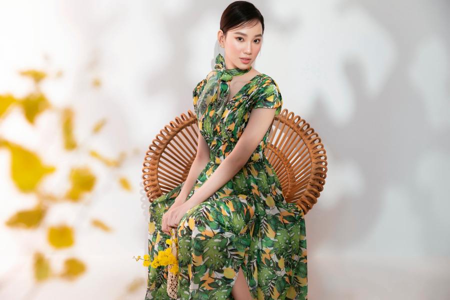 Chất liệu voan cao cấp với hoạ tiết hoa tươi sáng cũng tôn lên vẻ đẹp nữ tính, thanh thoát của cô. NTK Đỗ Long chia sẻ: “Ái Nhi là cô gái bản lĩnh, kiên cường vượt qua khó khăn để theo đuổi đam mê. Sức sống dồi dào của em rất phù hợp với tinh thần ‘Where flowers bloom, so does hope' (ở đâu có hoa tươi, ở đó có hy vọng) của bộ sưu tập lần này".