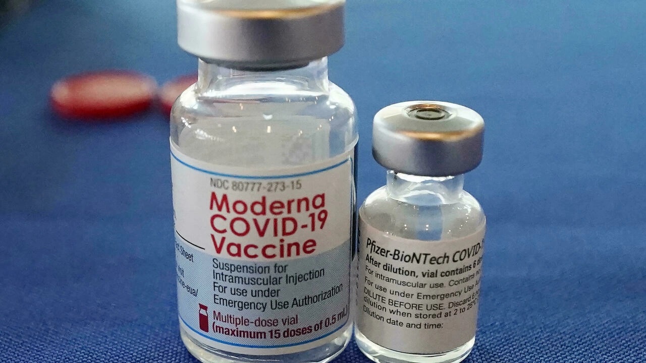 Ảnh minh họa: Vac-xin ngừa Covid-19 của hãng Moderna (T) và của Pfizer/BioNTech (P). AP - Rogelio V. Solis