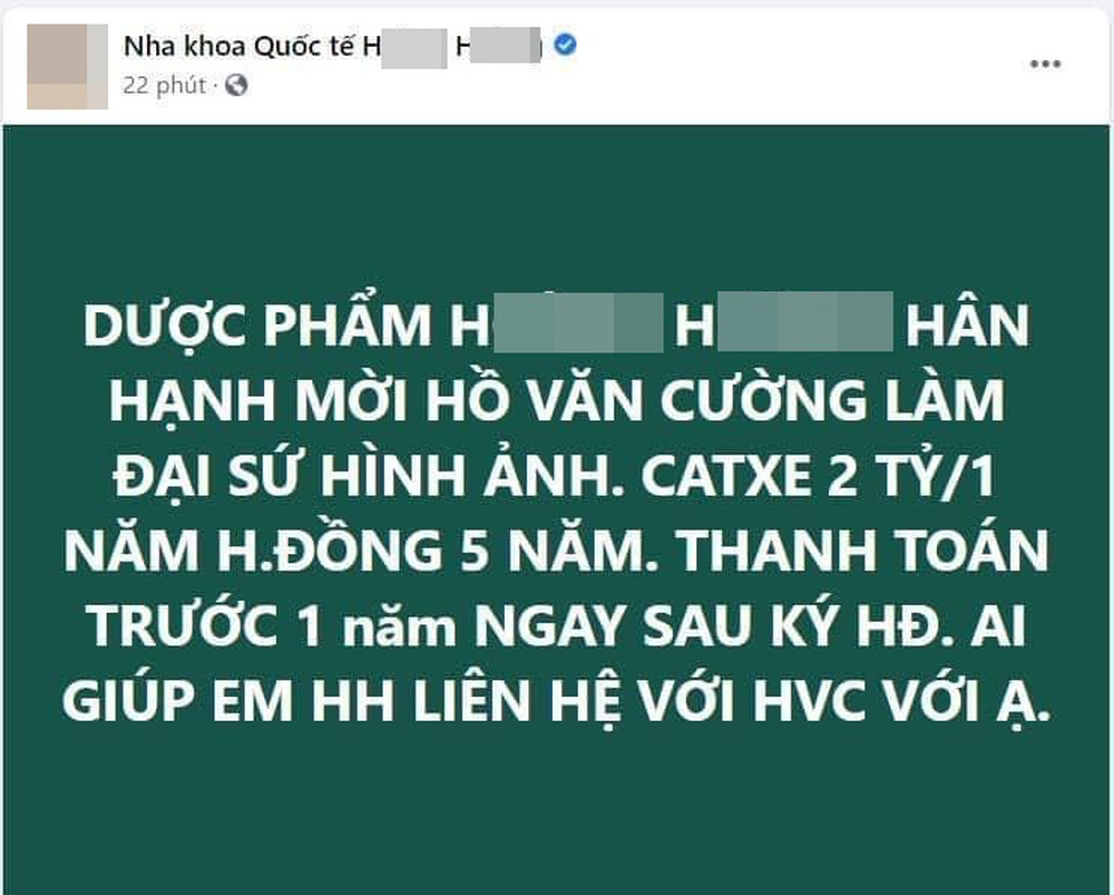 Giữa lúc xôn xao đó, một nhãn hàng nhanh miệng tuyên bố muốn mời ngay Hồ Văn Cường làm đại sứ hình ảnh, trả cát-xê 2 tỷ đồng/năm. Nhãn này cũng nhấn mạnh sẽ ký hợp đồng 5 năm và thanh toán trước 1 năm ngay khi ký hợp đồng.