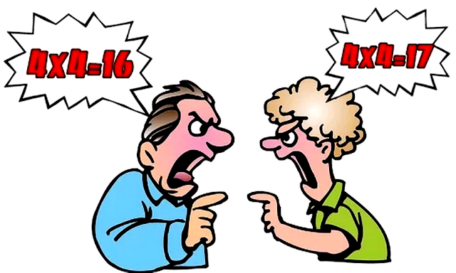 Một người nói: 4 x 4 = 16. Một người nói: 4 x 4 = 17
