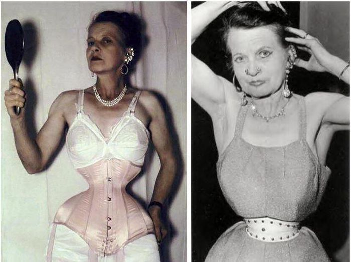 Ethel từng có cơ thể với tỉ lệ bình thường như bao phụ nữ khác, nhưng vì chồng mà bà đã thay đổi vòng 2 đến mức biến dạng. Phương pháp siết ao của Ethel khá cổ điển, đó là mặc áo nịt bụng liên tục trong suốt hơn 1 thập kỷ, và lý do bà chịu đau đớn làm như vậy để được "đẹp hơn trong mắt chồng". Bà còn xỏ khuyên khắp mặt và cơ thể, mang những đôi giày gót cao bất thường với mục tiêu hoàn thiện vẻ ngoài "chiều lòng" chồng.