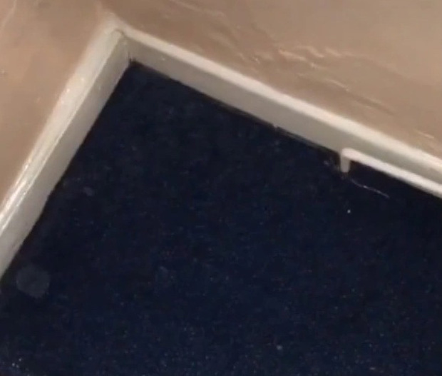 Khi lật tấm thảm lên, TikToker phát hiện phần sàn nhà gỗ phía dưới bị bập bênh và có màu sắc có chút khác biệt. Cô đặt tay vào cạy thử lên thì bí mật bất ngờ mới được bật mí: có cả một lối đi bí mật ở dưới sàn nhà.