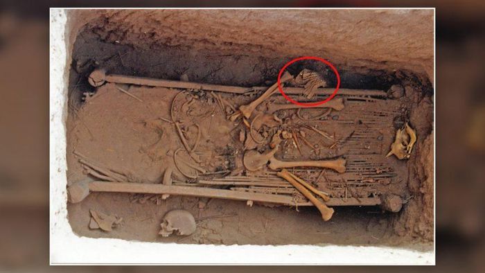 Bộ áo giáp (được khoanh đỏ) được phát hiện trong khu lăng mộ cổ ở tây bắc Trung Quốc