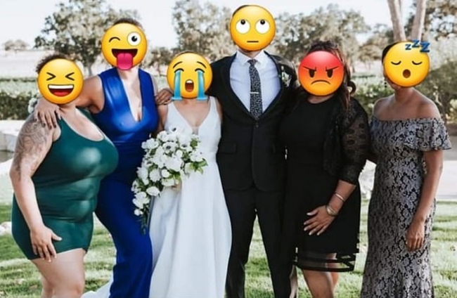 Cô dâu trong bức ảnh này đã lên tiếng nhờ cư dân mạng photoshop chỉnh sửa váy của hai người họ hàng để cho chúng trông kín đáo hơn.