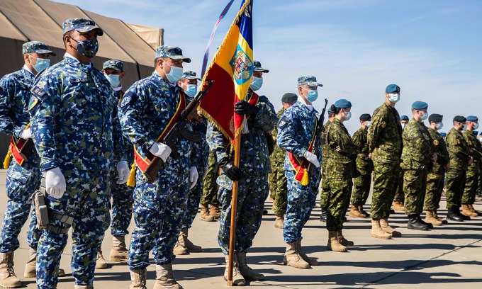 Binh sĩ Romania và Canada trong lễ trao chứng nhận sẵn sàng chiến đấu của NATO tại căn cứ không quân Mihail Kogalniceanu tháng 9/2021. Ảnh: US Army.