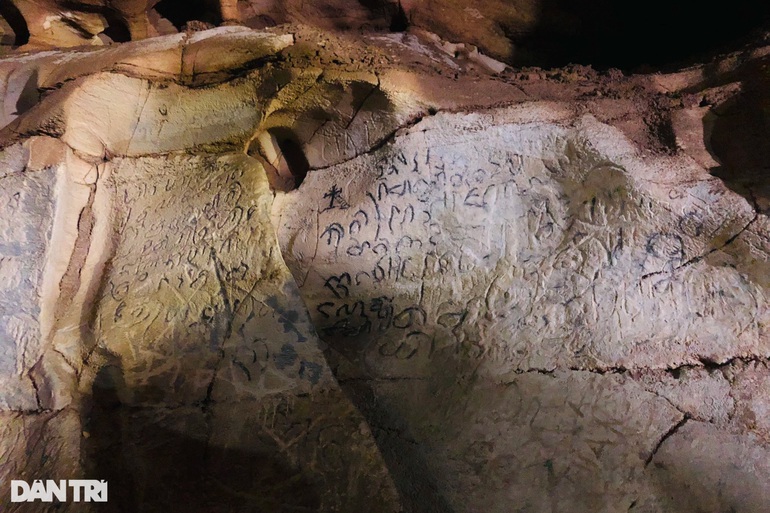 Bên trong hang Bi Ký, thuộc động Phong Nha có nhiều ký tự cổ đầy bí ẩn.