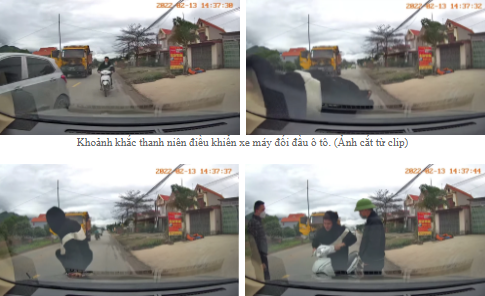 Cụ thể vào khoảng 14h37' chiều ngày hôm nay (13/2), khi đang lưu thông trên đường thì ô tô bỗng bị thanh niên chạy xe máy đâm trực diện. Cú đâm mạnh khiến thanh niên lao lên nắp capo, may mắn không gặp chấn thương gì, còn phần đầu ô tô thì có lẽ đã bị đâm móp.