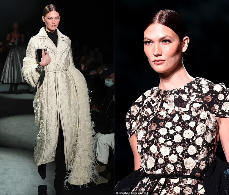 Karlie Kloss, 29 tuổi, cao 1,88 m đã mặc hai mẫu thiết kế sang trọng và thanh lịch của Brandon Maxwell và sải bước cuốn hút trên sàn catwalk. Karlie Kloss hầu như không còn trình diễn thời trang sau khi sinh con đầu lòng vào tháng 3 năm ngoái, vì thế việc cô tái xuất trên sàn diễn khiến người hâm mộ bất ngờ và thích thú.
