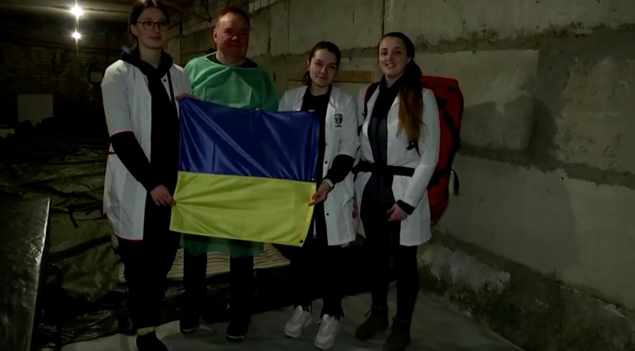 Các nhân viên y tế Ukraine đã lập một bệnh viện dã chiến tạm thời trong một hầm tránh bom ở thủ đô Kyiv. Các phòng trong hầm trú ẩn đã được chuyển đổi thành phòng ngủ với nệm trên sàn và được ngăn bởi các tấm nhựa để tạo ra phòng tiền phẫu và phòng phẫu thuật.
