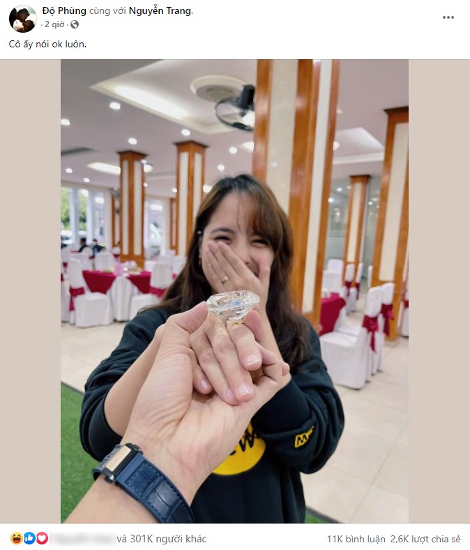 Theo đó, Tộc Trưởng đã để lại dòng cap 'Cô ấy nói ok luôn' tương tự như dòng cap 'She said yes' của Lê Khôi. 'Màn cosplay' giống đến nỗi 'chính chủ' của trend này đã vào để lại bình luận trêu chọc Độ Mixi: 'Giọng văn của anh zai là hơi quen đấy nhá'