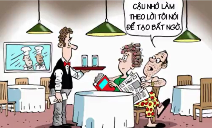 Sinh nhật vợ, anh chồng quyết định đưa bà xã đến một nhà hàng thật sang trọng; họ đặt một phòng ăn riêng để có không gian ấm cúng cho hai người.