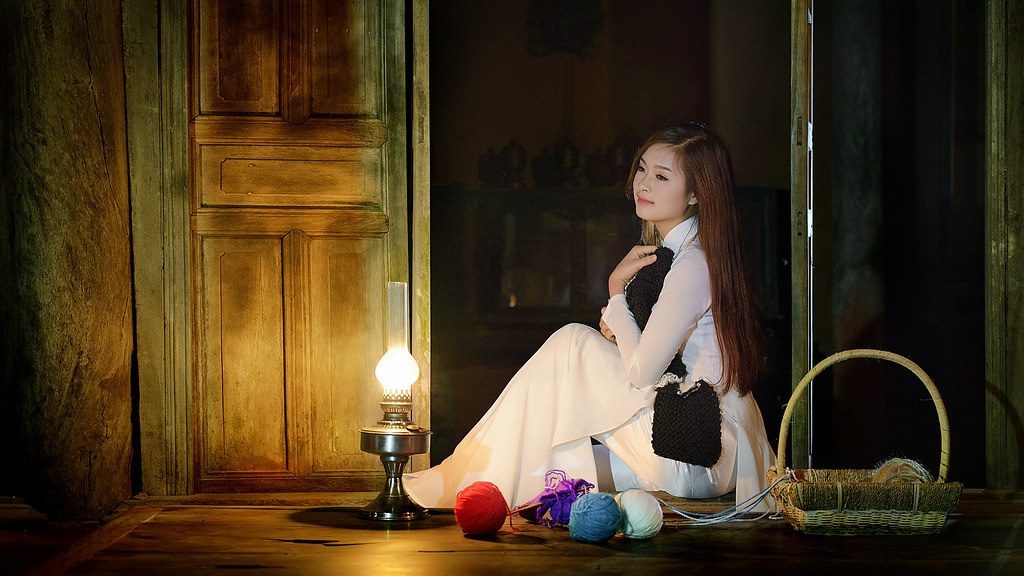 Áo Dài Trắng Mắt Huyền Tóc Xơa Vai