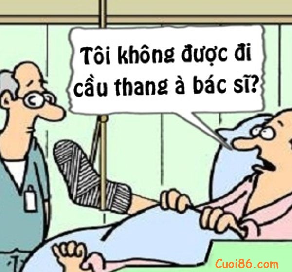 – Này bác sĩ, bây giờ chân tôi đỡ nhiều rồi, tôi có đi cầu thang được chưa?
