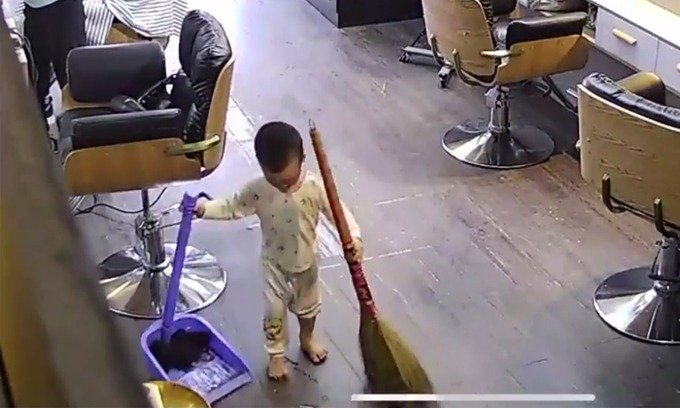 Bé trai quét nhà siêu sạch. 'Đẻ được đứa con quét nhà sạch hơn mẹ nó', người bố hài hước. Cậu bé quét điêu luyện không kém gì người lớn. Quét nhà xong còn đi đổ rác và cất chổi.