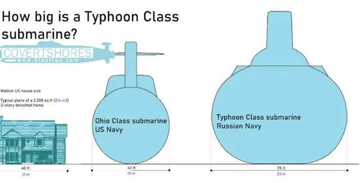 Những hình ảnh trực tiếp mà cơ quan tác chiến dưới biển H.I. Sutton mô phỏng cho thấy Typhoon còn to hơn các tàu ngầm tên lửa đạn đạo lớp Ohio hay cả một ngôi nhà của Mỹ. Mặc dù tàu ngầm lớp Typhoon chỉ dài hơn tàu Ohio 5m, nhưng chúng lại rộng hơn và cao hơn đáng kể.