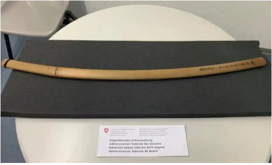 Văn phòng Liên bang về Hải quan và An ninh Biên giới cho biết thanh kiếm katana, có niên đại từ năm 1353 và trị giá 650.000 euro (khoảng 700.000 USd), được tìm thấy trong một chiếc ôtô mang biển số Thụy Sĩ tại cuộc khám xét thường lệ gần Zurich. Một số đồ vật khác cũng được tìm thấy trong xe, bao gồm một cuốn sách cổ, một hợp đồng và hóa đơn bán hàng.