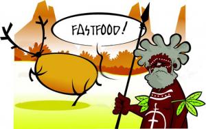 Có một cặp vợ chồng đang sống trong thời kỳ đồ đá. Chồng nằm ngủ dưới bóng râm, người vợ lo lắng bảo: