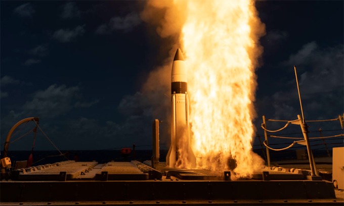 Tên lửa Standard Missile 3 Block IA rời ống phóng trên khu trục hạm USS Fitzgerald trong diễn tập Pacific Dragon trên Thái Bình Dương ngày 9/8. Ảnh: US Navy.