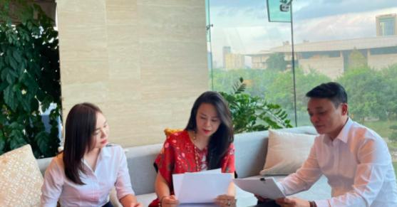 Hình ảnh bà Đào Lan Hương (ngồi giữa) làm việc với Luật sư chiều ngày 27/8.
