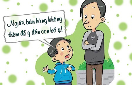 - Con cũng đâu muốn đâu. Do người bán hàng chỉ lo phục vụ những người lớn đến sau con thôi, chẳng thèm để ý đến con bố ạ.