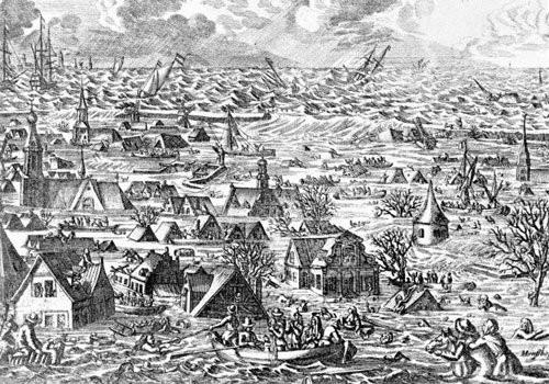 Hà Lan - đất nước nằm trên các cửa sông Rhine, sông Scheldt và sông Meuse - là một trong những "nạn nhân" lớn nhất của lũ lụt. Người ta ước tính, trận lụt ở Biển Bắc bắt đầu vào tháng 6/1212 và kết thúc sau hơn sáu tháng sau đó, đã cướp đi sinh mạng của khoảng 60.000 người; hàng trăm nghìn người đã phải rời bỏ nhà cửa. Trận lũ cũng gây ra những thiệt hại không thể khắc phục được đối với tài sản và cơ sở hạ tầng. Đất nước có biểu tượng là cối xay gió đã phải mất hơn hai năm để phục hồi sau trận lụt này.