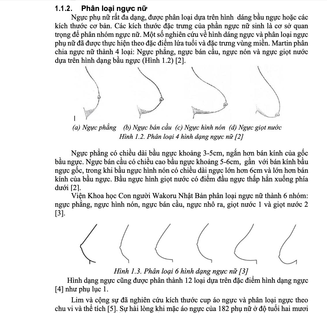 Đó là luận án tiến sĩ ngành công nghệ dệt-may có tiêu đề "Nghiên cứu ảnh hưởng của đặc điểm nhân trắc ngực nữ sinh Bắc Việt Nam tới áp lực và độ tiện nghi áp lực của áo ngực". Tác giả của "công trình nghiên cứu" này là Lưu Thị Hồng Nhung và hai người hướng dẫn là Phó giáo sư Tiến sĩ Nguyễn Nhật Trinh và Nguyễn Thị Lệ. Trong luận án dày 142 trang, tác giả Lưu Thị Hồng Nhung (hiện làm việc tại Khoa Công nghệ may và thời trang Trường ĐH Sư phạm Kỹ thuật Hưng Yên) có viết:
