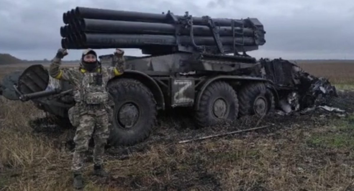 Một bệ phóng BM-27 Uragan 220mm của Nga đã bị quân đội Ukraine phá hủy ở Kherson. Ảnh UAweapons