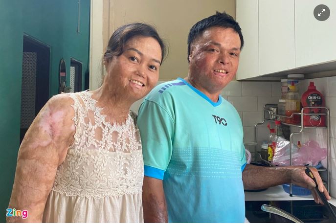 Sau nhiều đau đớn, tổn thương, chị tìm thấy hạnh phúc mới bên anh Nguyễn Văn Minh (33 tuổi) - một người đồng cảnh ngộ, từng bị bỏng xăng đến biến dạng khuôn mặt và đôi tay.