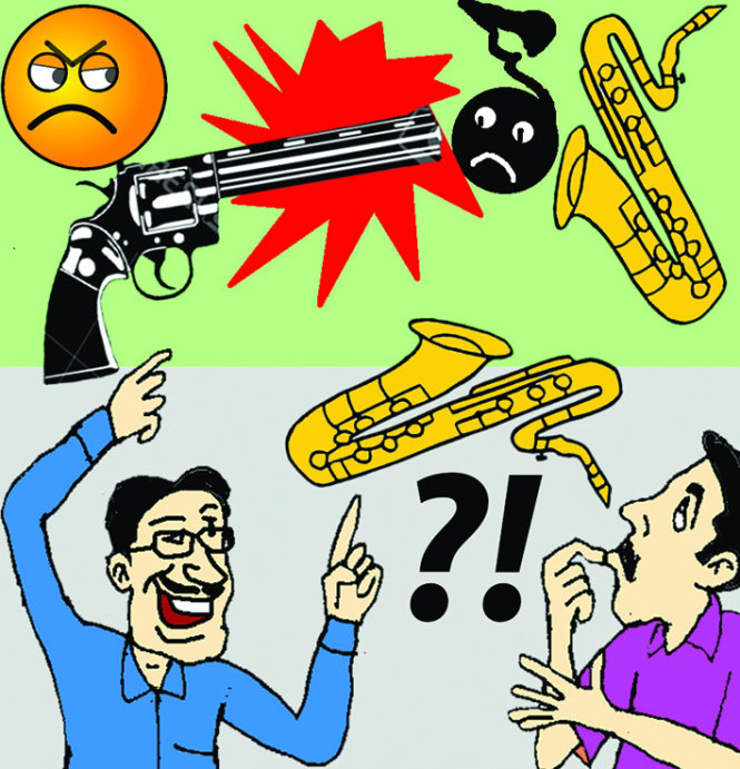 - Sao ông đã bán nhạc cụ, lại còn bán cả vũ khí nữa?