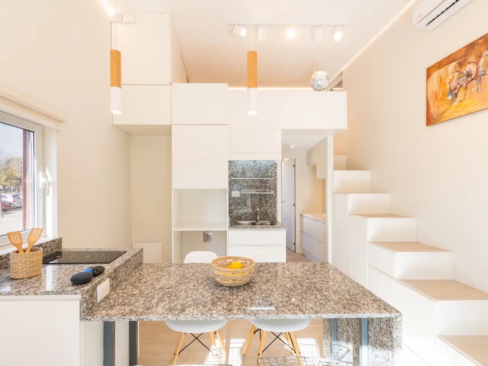 Căn nhà dù chỉ rộng gần 45 m2 nhưng vẫn có đủ phòng khách, gian bếp, phòng ngủ, phòng tắm và một gác lửng nhỏ. Nơi đây cũng được trang bị nhiều cửa sổ để tận dụng ánh sáng tự nhiên từ ngoài trời.